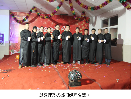 本届年会中,穿插着丰富多彩的节目表演以及激动人心的抽奖活动。车间员工史雷等人的《雷人舞蹈》给大家掀起了一个精彩的开头;销售部冯敏等人的《歌曲串烧》让大家激情澎湃;仓库王小虎的《海阔天空》让大家热血沸腾;中间插入的“爱的宝宝”游戏活动让全场气氛互动的热闹非凡;一波波的抽奖活动将年会现场氛围推向了高潮;最后大家合唱的《相亲相爱的一家人》为本次年会圆满的画上了句号。全体员工为新的一年举杯同庆,共同祝愿荣马的灿烂明天。整个年会在和谐、温馨、激情、欢乐的气氛中圆满落下帷幕。