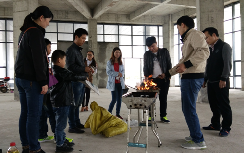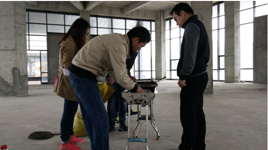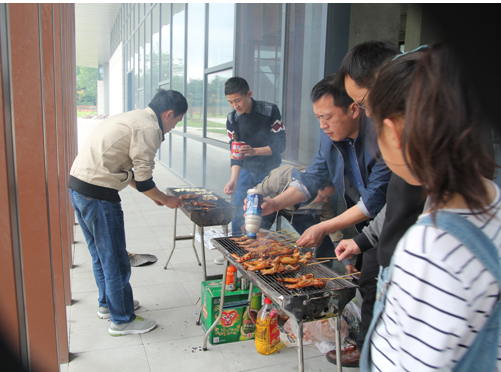 你看!有人洗菜,有人生火,有人串制食物,配合默契,忙得不亦乐乎!最费劲是要数起炉了,几个人围着炉灶有的扇风,有的吹气,有的拿报纸点火,费了很大的劲儿才把炭火点燃。趁着旺盛的炭火,烧烤正式拉开了帷幕。大家展示了不同的烧烤方法和技艺。欢声笑语随着缕缕炊烟萦绕在空中,大家吃着自己亲手烤出的各种食品,聊着自己在工作和生活中遇到的各种趣事,其乐融融!活动一直持续到下午15:00,食物几乎被大家“洗劫一空”,整个活动气氛非常热烈!