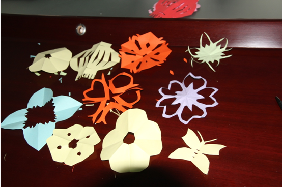 经过紧张、激烈的比赛,一张张彩纸在选手们的手中变成了各种各样的图形,很多选手还在规定的时间内剪出自己独特的图案,另大家目不暇接,赞叹不已。