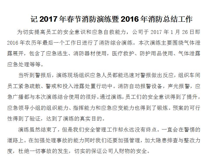 记2017年春节消防演练暨2016年消防总结工作
