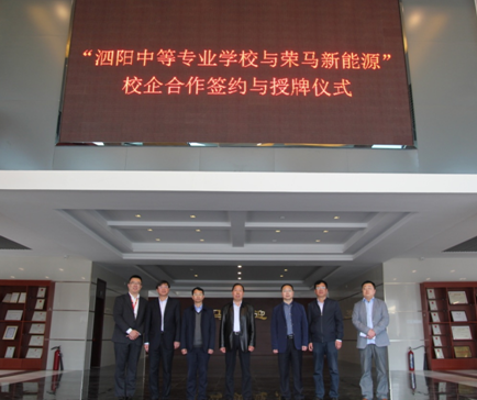 4月16日下午16:00左右,我司与江苏省泗阳中等专业学校在公司办公楼大厅举行校企合作签约仪式。出席本次活动的有县人大副主任、县企业服务局局长葛习和,县教育局局长付荣生,县人社局局长姜南,县企业服务局副局长施大勇,县中等职业学校校长郑为双,荣马新能源总经理朱姚培,仪式由县企业服务局副局长施大勇主持。