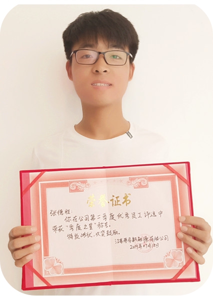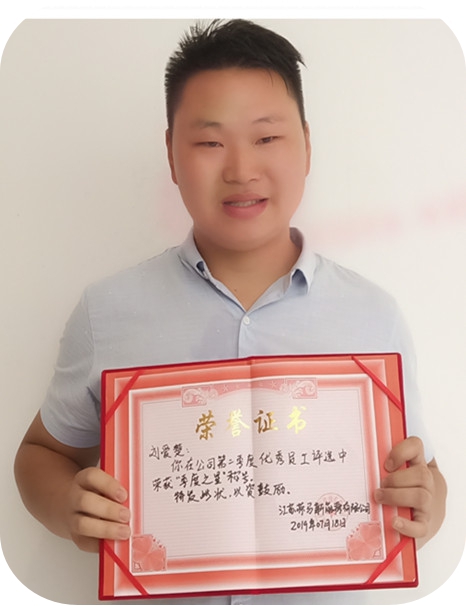 荣耀时刻:凝聚榜样力量,他们像是折射太阳光辉的一滴水,是带动荣马科技走向辉煌的一个个平凡而又不平凡的人。在颁奖仪式上,公司人力行政部经理路芳敏为4名“季度之星”颁发了荣誉证书、300元/人现金奖励等荣誉。让我们走近他们,做一个优秀而了不起的荣马人。