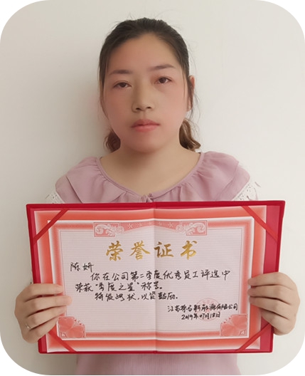 质量部“季度之星”姜晓红 生产部“季度之星”陈妍