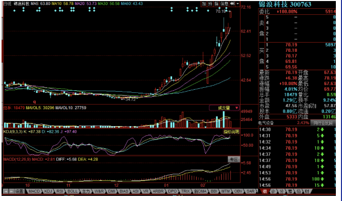 股价方面,锦浪科技于今日创出70.19元的11个月新高,距其历史新高74.77元仅有一步之遥。自2019年12月3日34.72元的低点,锦浪科技股价在2个多月时间内已成功翻倍。自2月3日41.00元低点算起,锦浪科技11个交易日最高涨幅也达71.19%。
