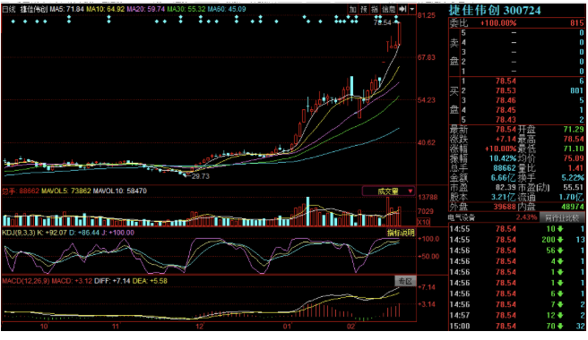 捷佳伟创的市场表现同样出色,自2019年11月25低点29.73元算起,至今日创出78.54元的历史新高,其股价区间最高涨幅已达164.17%。