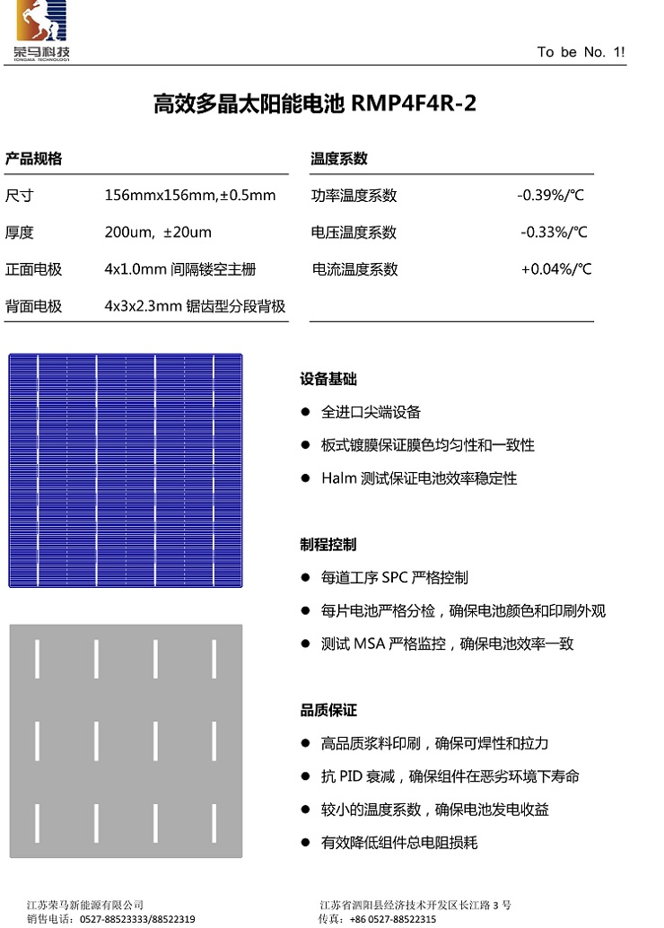 高效多晶太阳能电池RMP4F4R-2